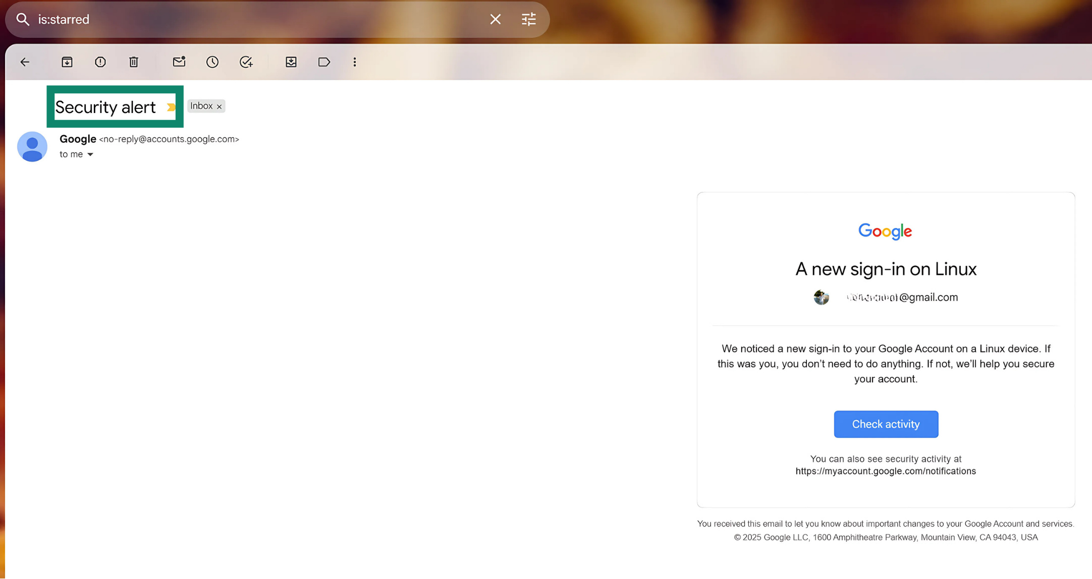 If you receive a notice you didn’t trigger, it may indicate unauthorized access. These alerts are meant to prompt quick action to prevent potential harm.You’ll also get an alert if Google blocks a sensitive action, like someone trying to view your saved passwords. Just be cautious: scammers sometimes send fake alerts, so it's important to verify the legitimacy of any message by checking your Google account settings for a matching alert.