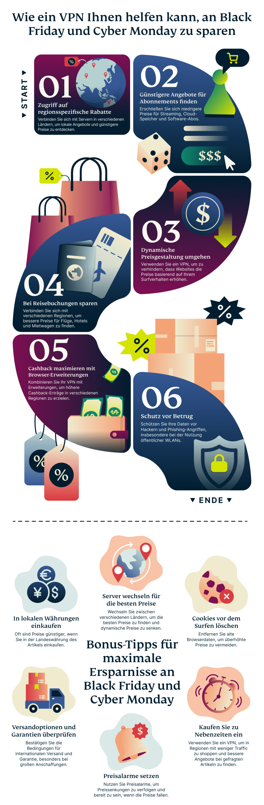 6 Möglichkeiten, mit einem VPN an Black Friday und Cyber Monday 2025 zu sparen