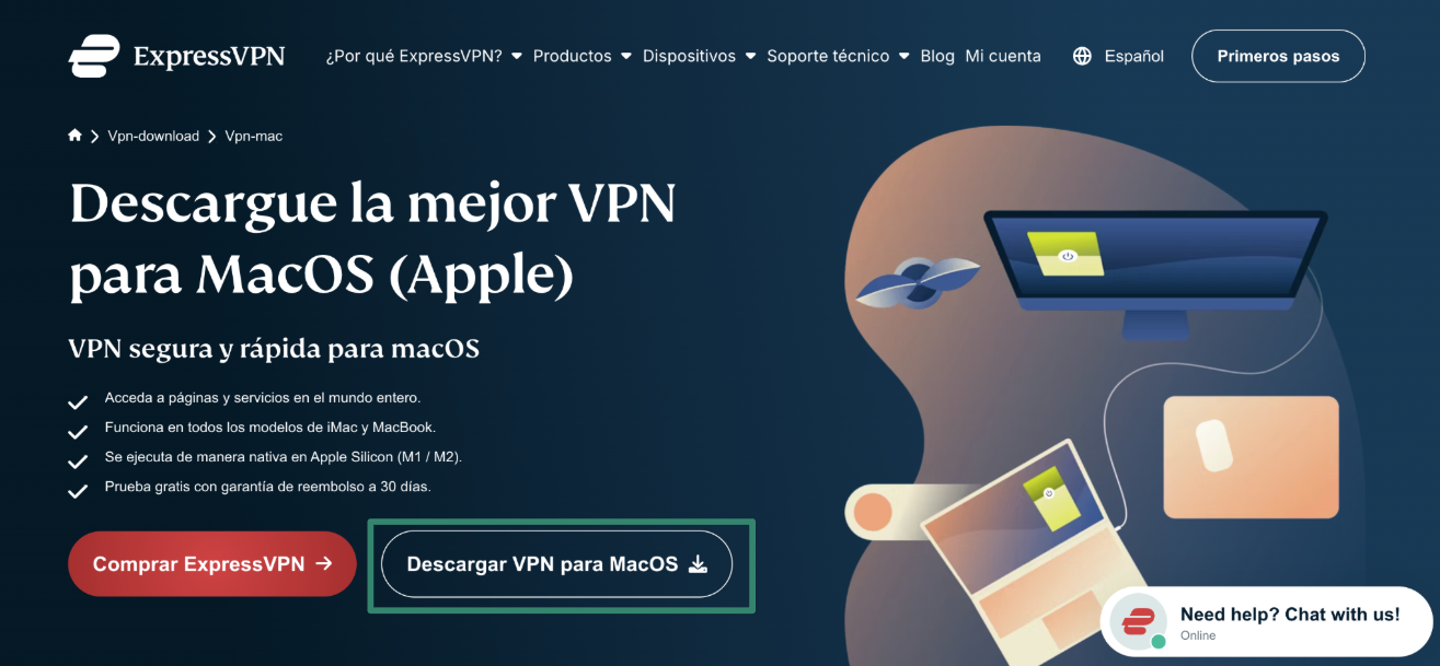 - Descarga la aplicación de ExpressVPN para macOS desde la página web oficial.