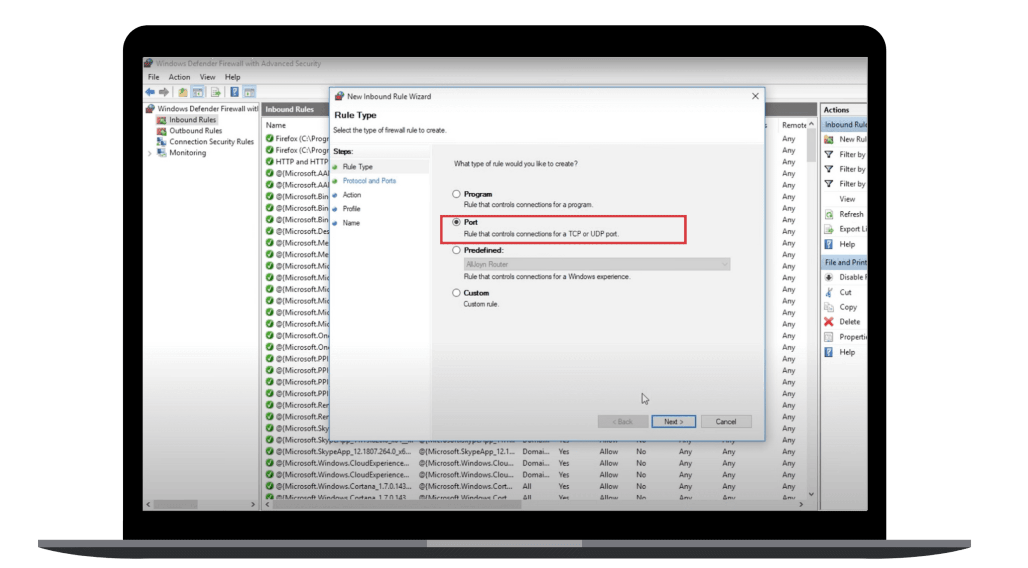 Abrir el puerto 443 es un poco más complejo que en Mac. Esto se debe a que necesita añadirlo directamente al Firewall de Windows. Para ello: