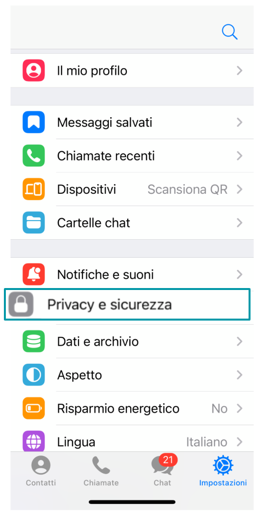 2. Seleziona Privacy e sicurezza. Qui puoi definire chi può vedere il tuo numero di telefono, la foto del profilo e l'ultimo momento di attività sull'app. Limitare l'accesso a "I miei contatti" invece che a "Tutti" può aiutare a mantenere più riservati i propri dati personali.