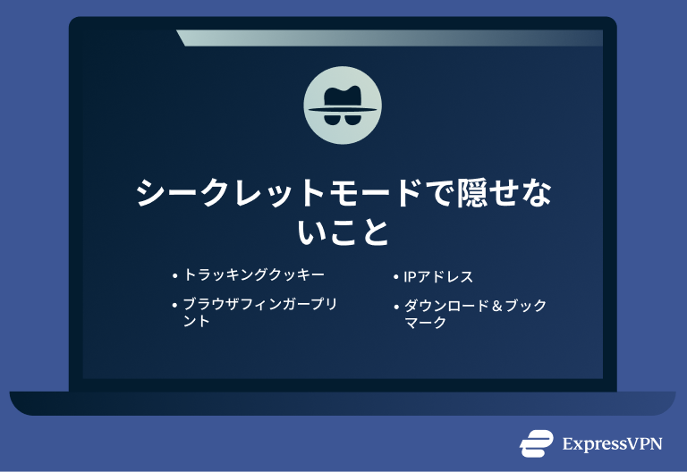 シークレットモードはあくまで使用している端末上で、閲覧履歴を非公開に保つための機能であり、オンライン上であなたの身元を隠すためのものではありません。