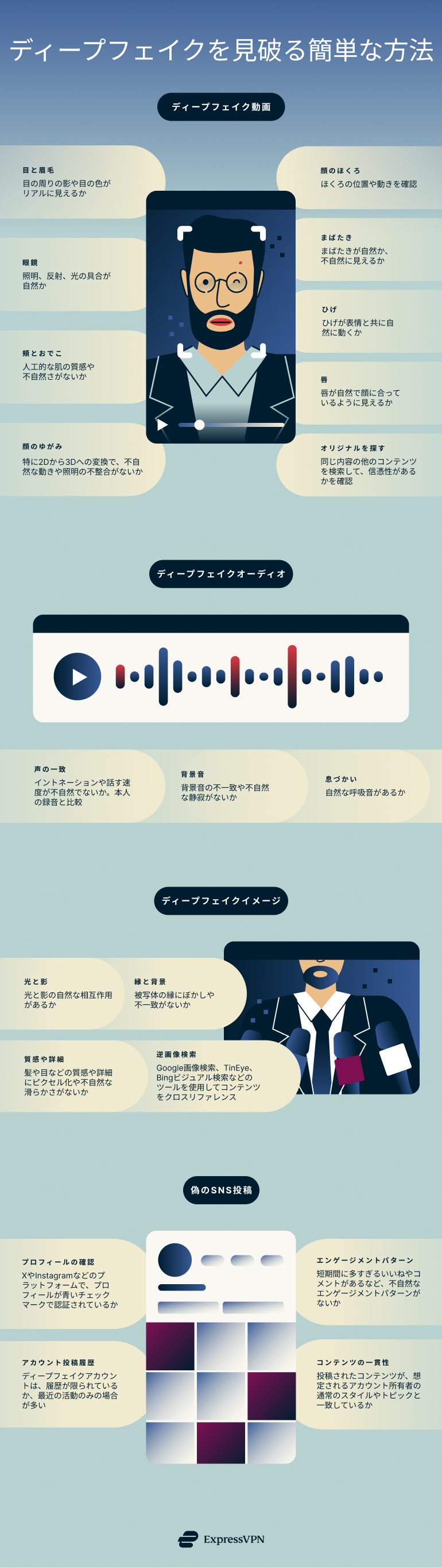 - ExpressVPNは、業界をリードするVPNサービスプロバイダであり、ユーザーがディープフェイクや偽の選挙ニュースの兆候を見分けるのに役立つガイドを提供します