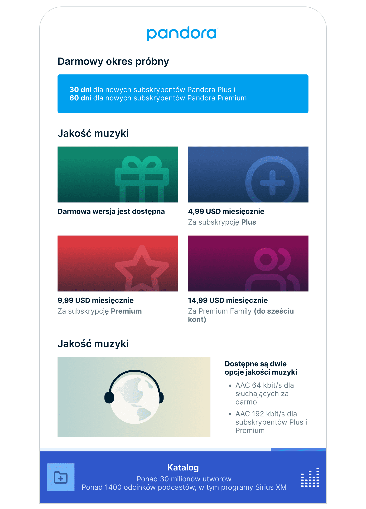 - Inne platformy, takie jak Deezer, Tidal i Pandora, posiadają unikalne oferty i modele cenowe, a także koncentrują się na odkrywaniu muzyki i zapewniają wysoką jakość dźwięku.