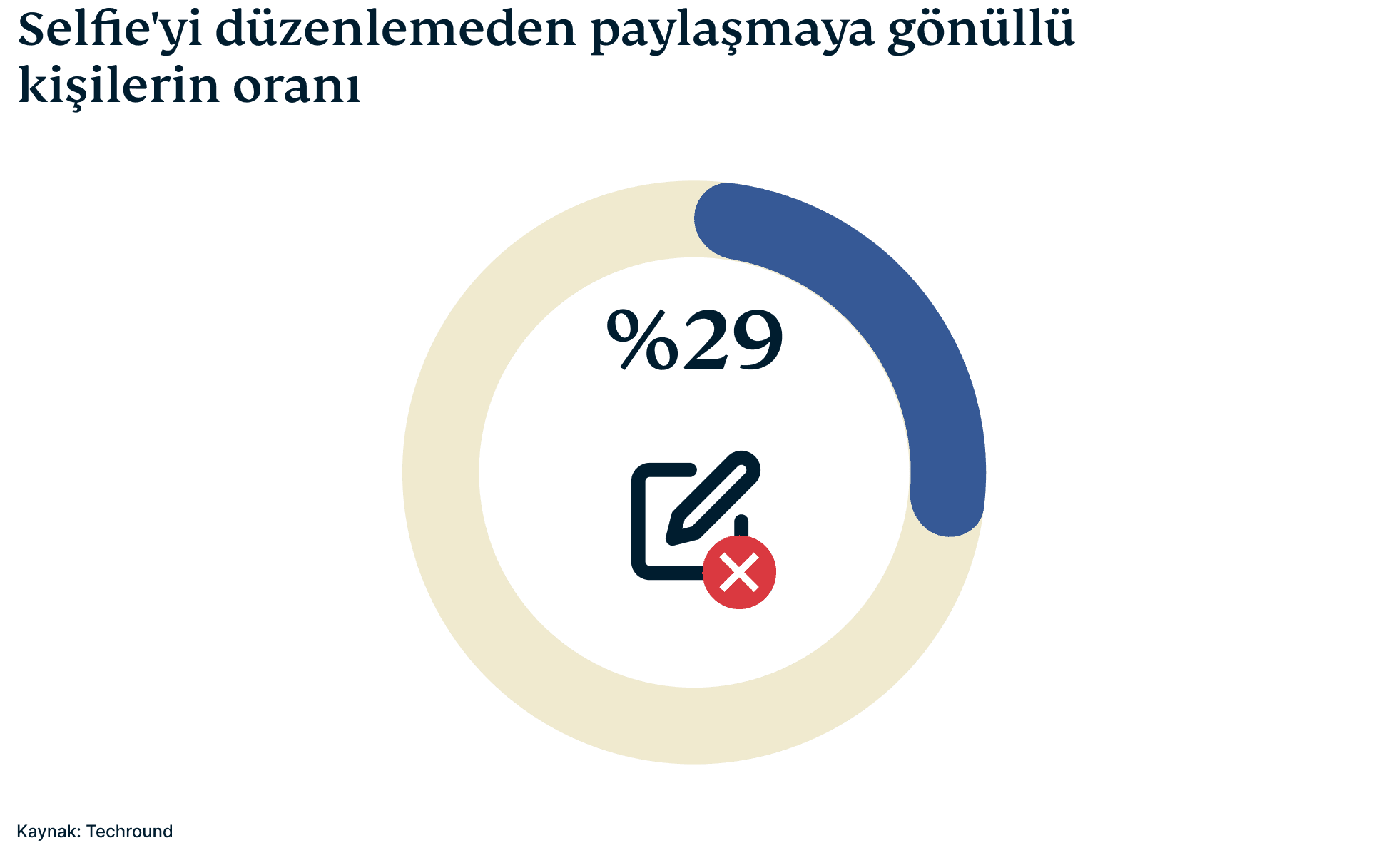Selfie’lerini düzenleyen kişiler arasında, yaklaşık %8’i bunun için Instagram’ı kullanırken, üçte ikisi Facetune uygulamasını kullanıyor. Bunu, tenlerindeki kusurları kapatmak ve yüz hatlarını değiştirmek için yapıyorlar.