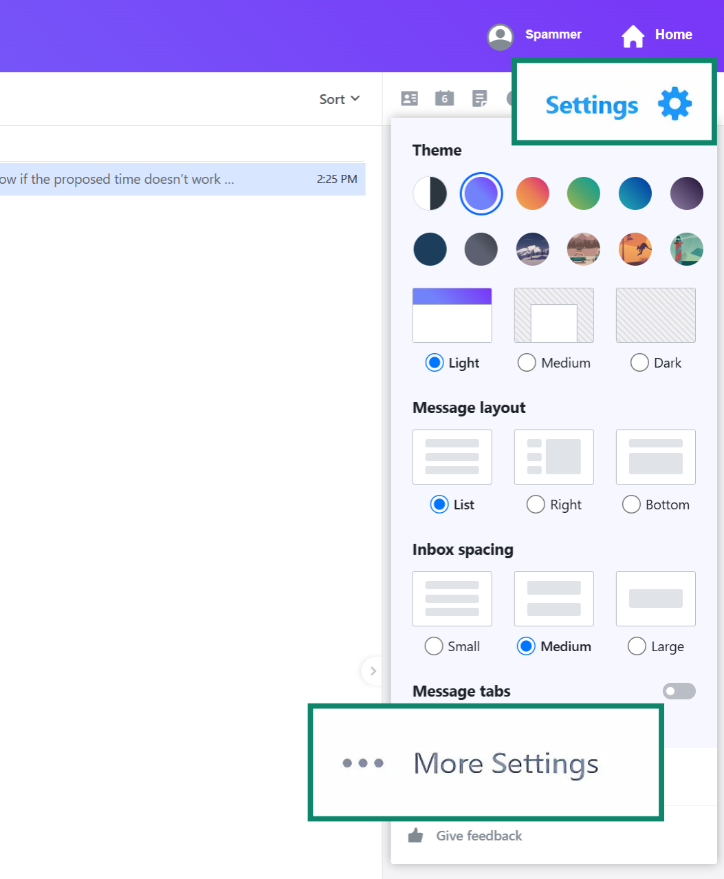 - In the top-right corner, open Gmail settings and choose Block [sender] to stop receiving all messages from that address.
