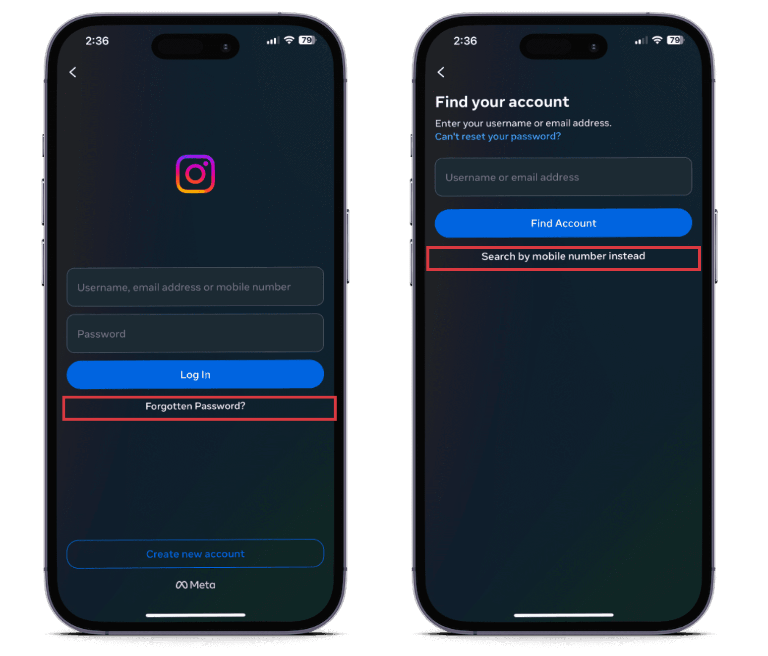 On iOS: Head to Instagram and choose the Forget password? option. Similar to the procedure on Android, a link will be sent to your registered email to regain access to your account.