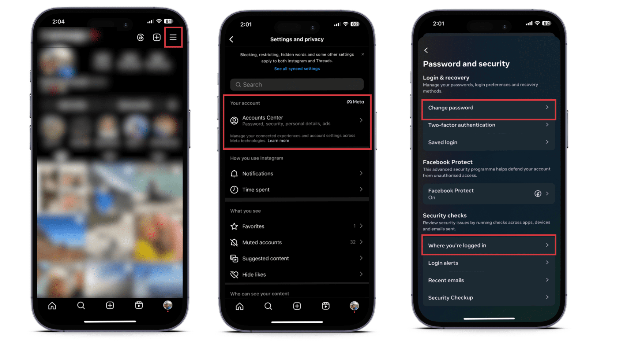 If you think your account has already been hacked, here are some things you can do: - Log out of all devices: Go to your Instagram settings to sign out of your account on all devices. - Change your password again: Use a new strong password that you don't use for any other accounts. - Report the hack to Instagram: Go to Instagram's help center and file a report.