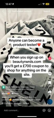 Another way for phishing scams to take place is when a scammer sends emails or messages that appear to be from well-known fast fashion brands, asking customers to confirm their account information or update payment details through a provided link. Clicking on these links directs the customer to a fake website designed to steal their information. Last year, Shein users started receiving phishing emails asking them to click on a link to receive a mystery box.
