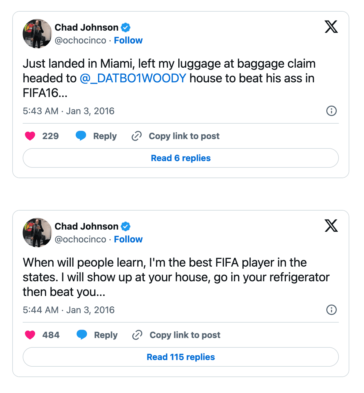 Johnson, auch bekannt als OchoCinco, ist nicht nur ein gefeierter ehemaliger NFL-Spieler, sondern auch eine namhafte Persönlichkeit in der Gaming-Community. Nach seiner Football-Karriere hat ihn sein Wettbewerbsgeist in die Welt der Videospiele verschlagen, wo Johnson besonders mit Spielen wie Madden, Call of Duty und FIFA hervorsticht.