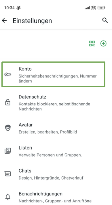 - Tippe auf die Schaltfläche Konto.