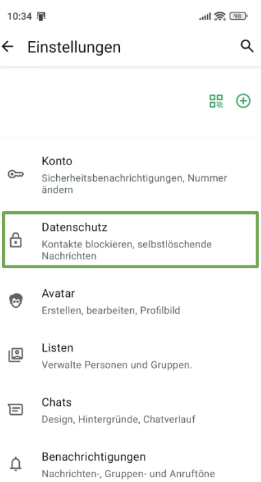 - Öffne die Einstellungen und tippe auf die Chat sperren.