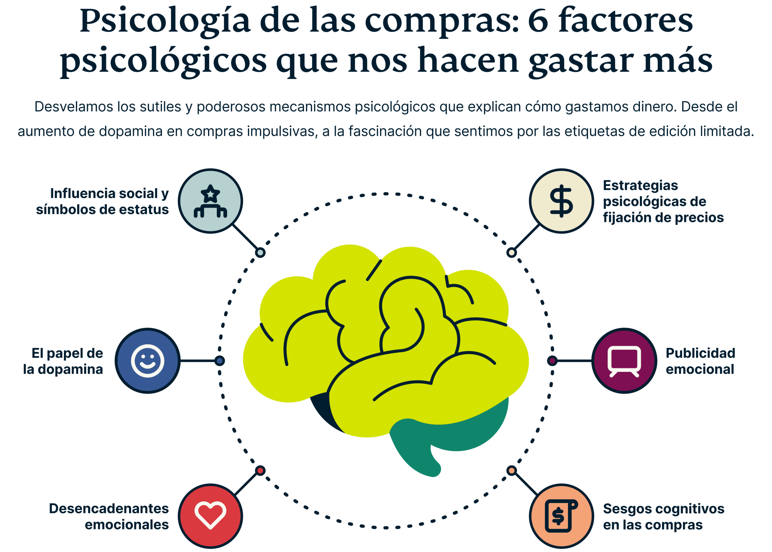 - El papel de la dopamina: La dopamina, un neurotransmisor vinculado al placer, se libera durante las compras, lo que las convierte en una actividad adictiva y, a menudo, impulsiva. Este factor que nos hace sentir bien es un fuerte motivador para las compras imprevistas.